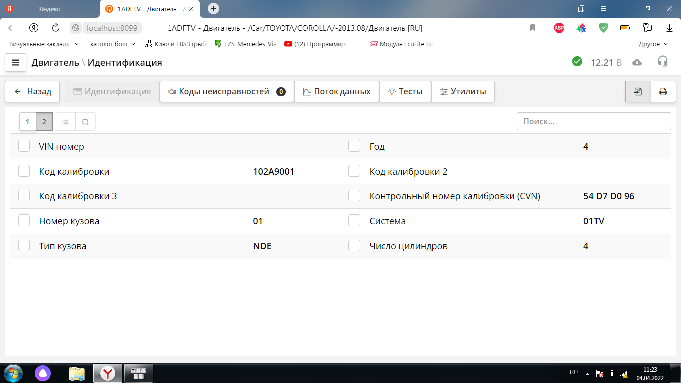 не определяет тип двигателя. если задать руками, нет в дате параметров.